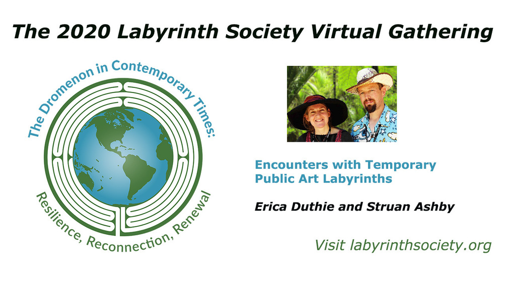 Artists Erica and Struan discuss their temporary hybrid ‘art-labyrinths’ and their unique potential as an invitation to ‘walk in community’ as part of public spaces and events. Unusual materials and methods including tape drawing, stenciling and painting will be demonstrated. We speak of our role as ‘kaitiaki’ (Maori for active hosts and custodians) who accompany our labyrinth installations. Hear the backstory of a recent socially distanced labyrinth created for our national museum to celebrate their reopening amidst the lifting of the Covid19 lockdown in New Zealand.